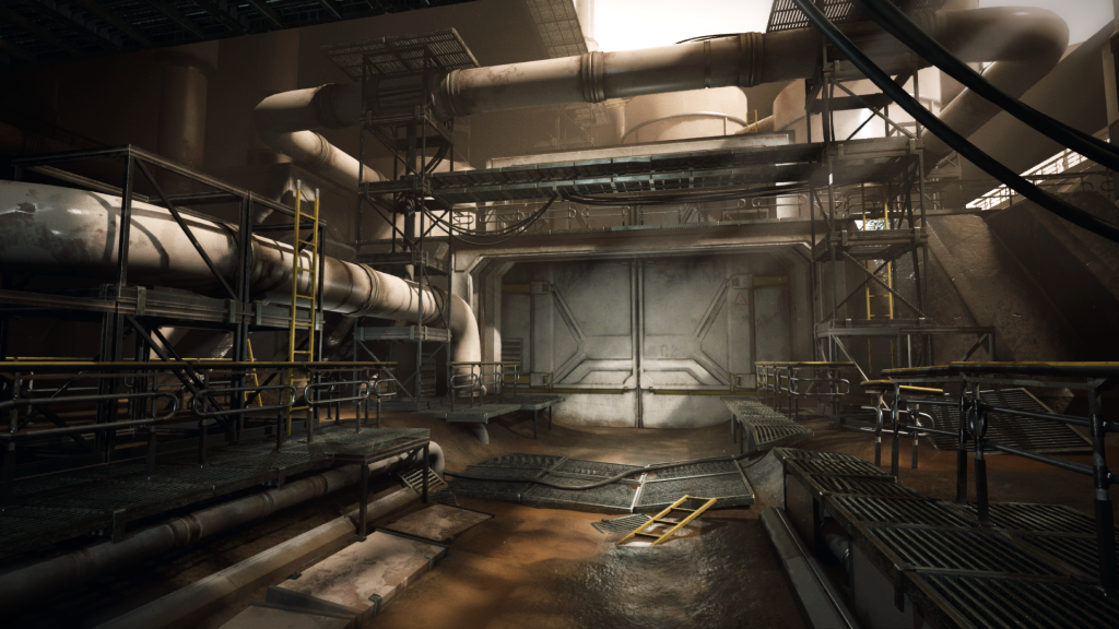 The Front Gate is an industrial sci-fi game environment focused on realistic PBR graphics and optimized performance for a first person shooter.